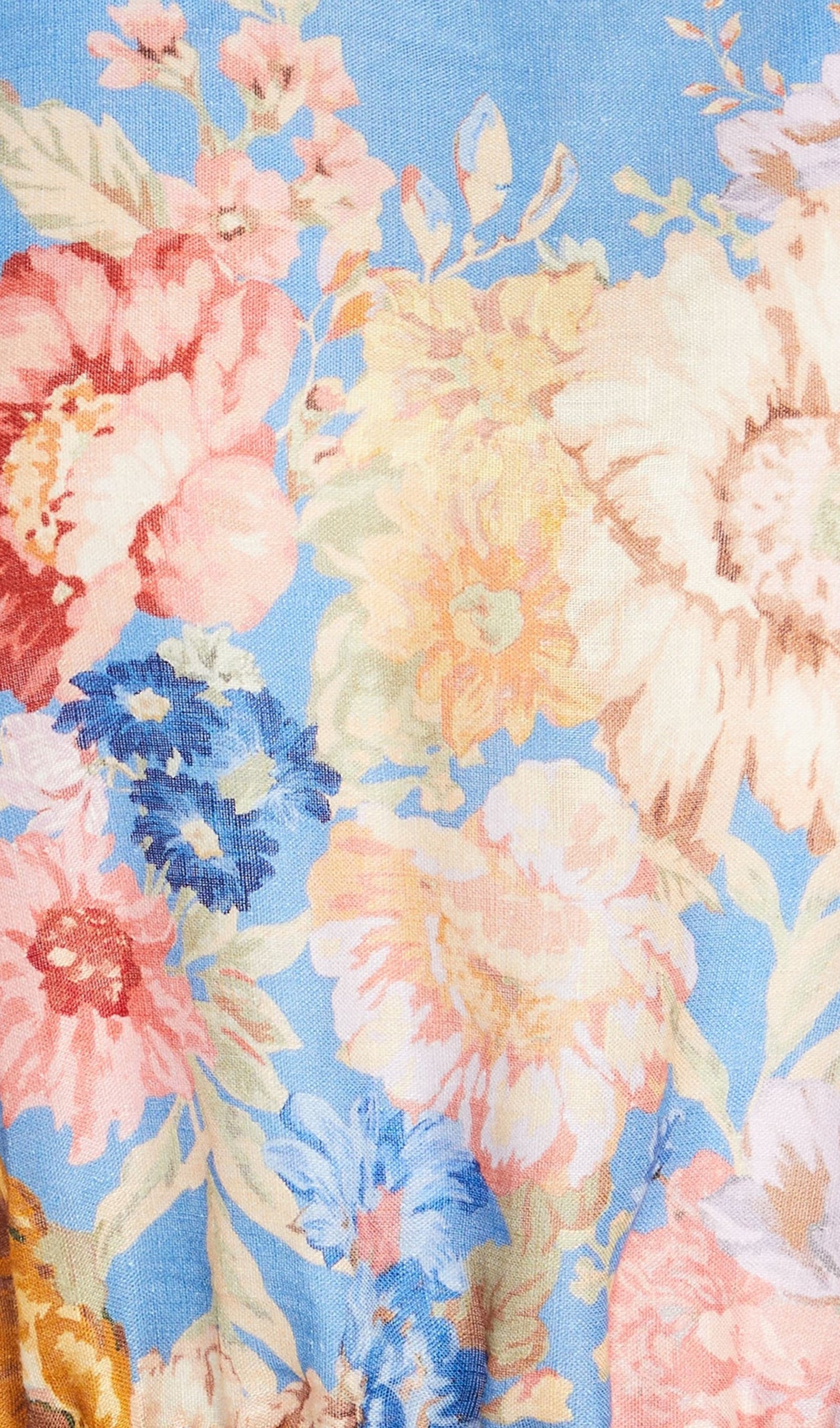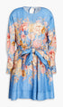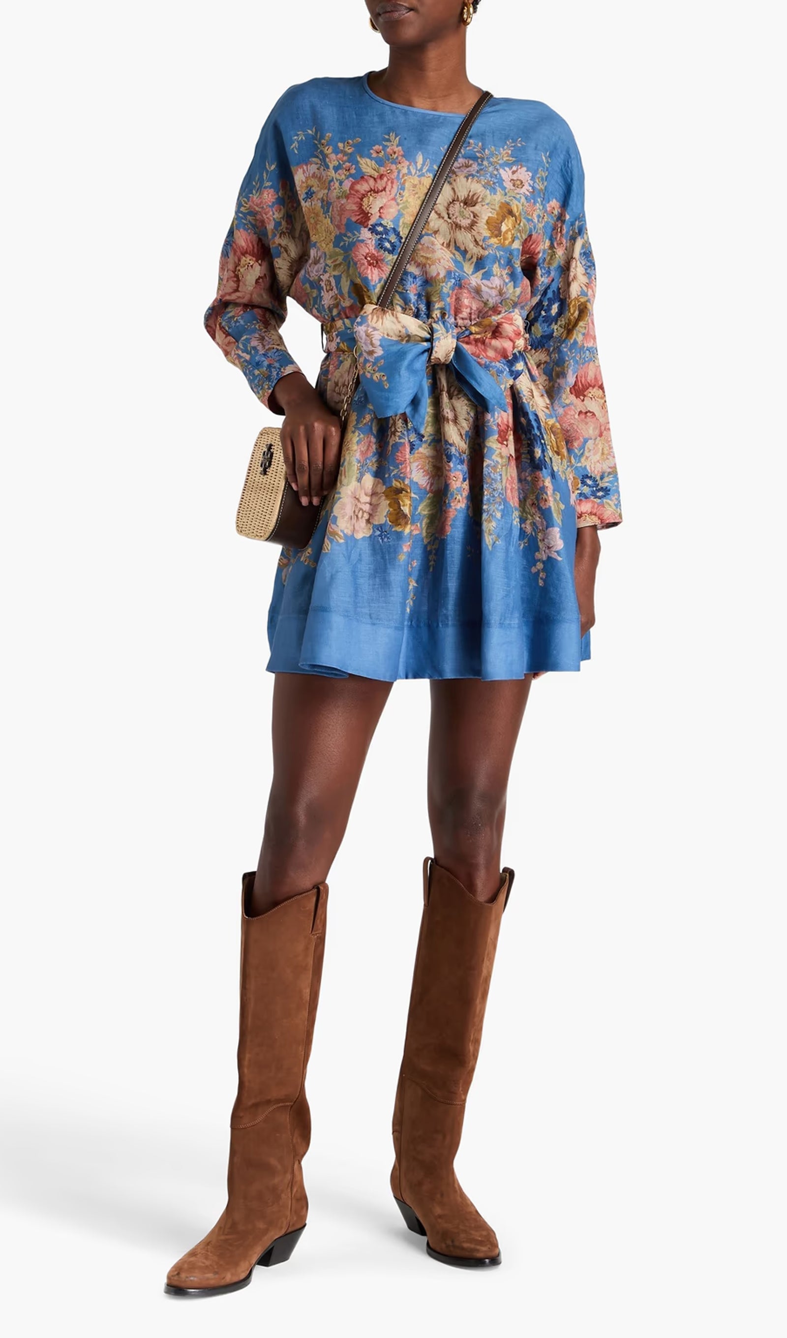 Kemerli Çiçek Desenli Keten Mini Elbise