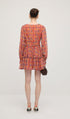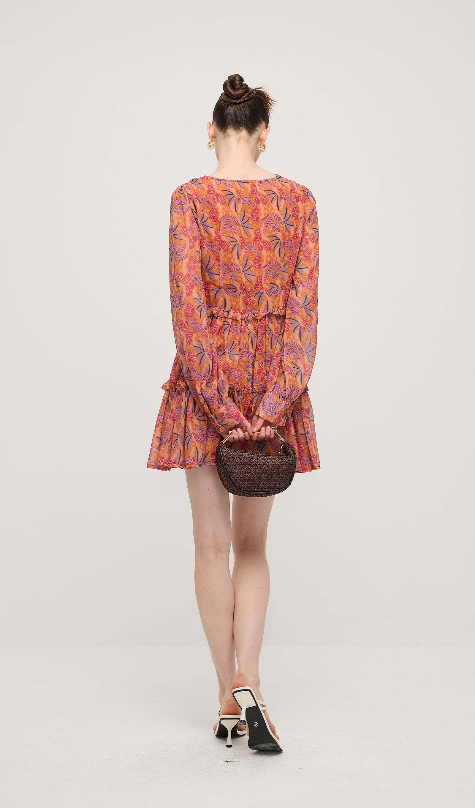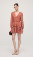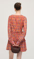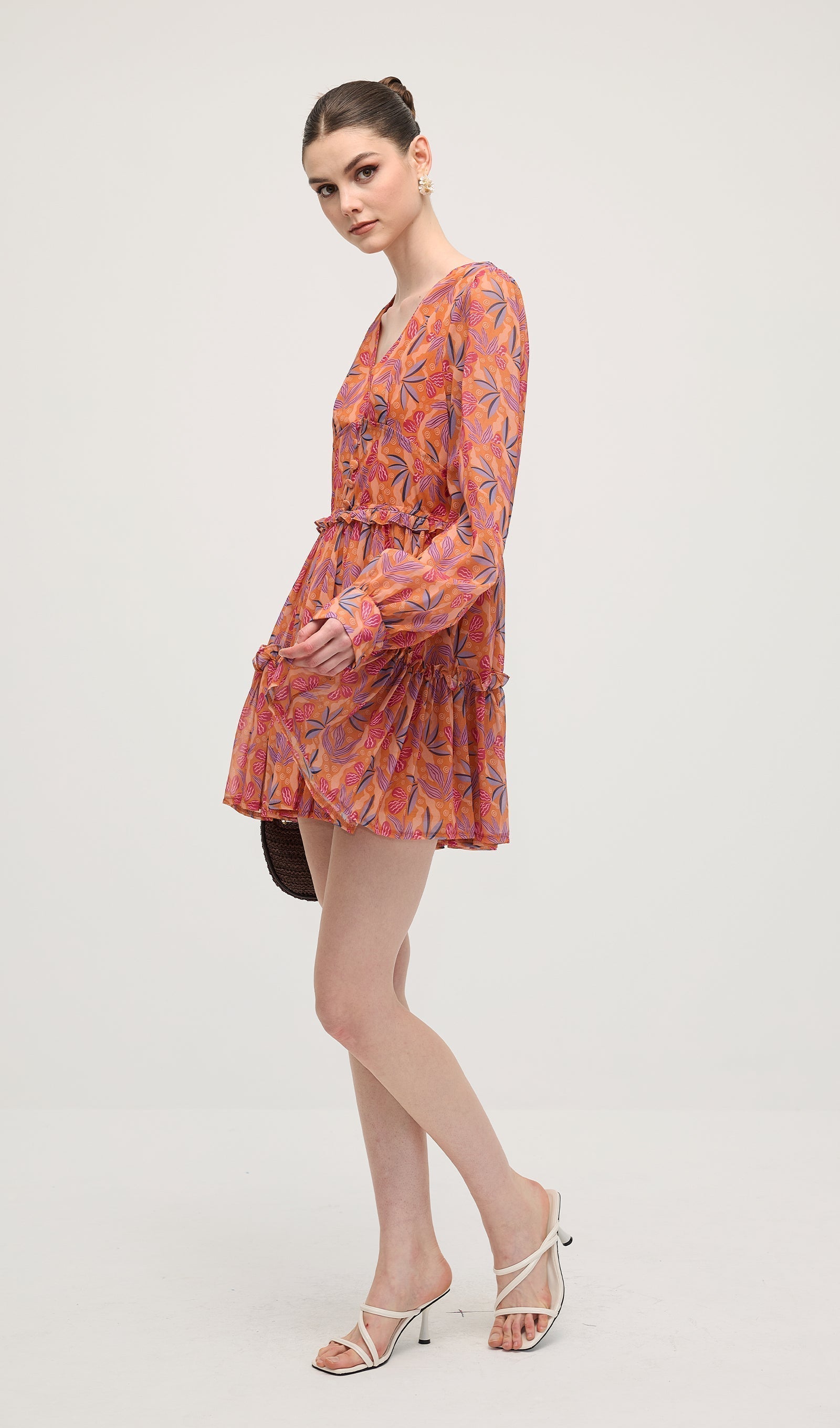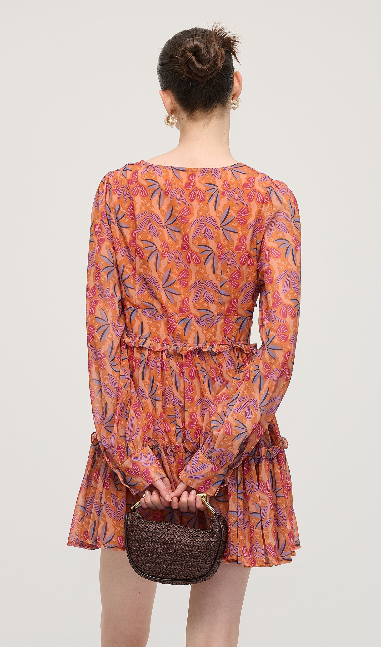 Çiçek Desenli V Yaka Fener Kollu Mini Elbise
