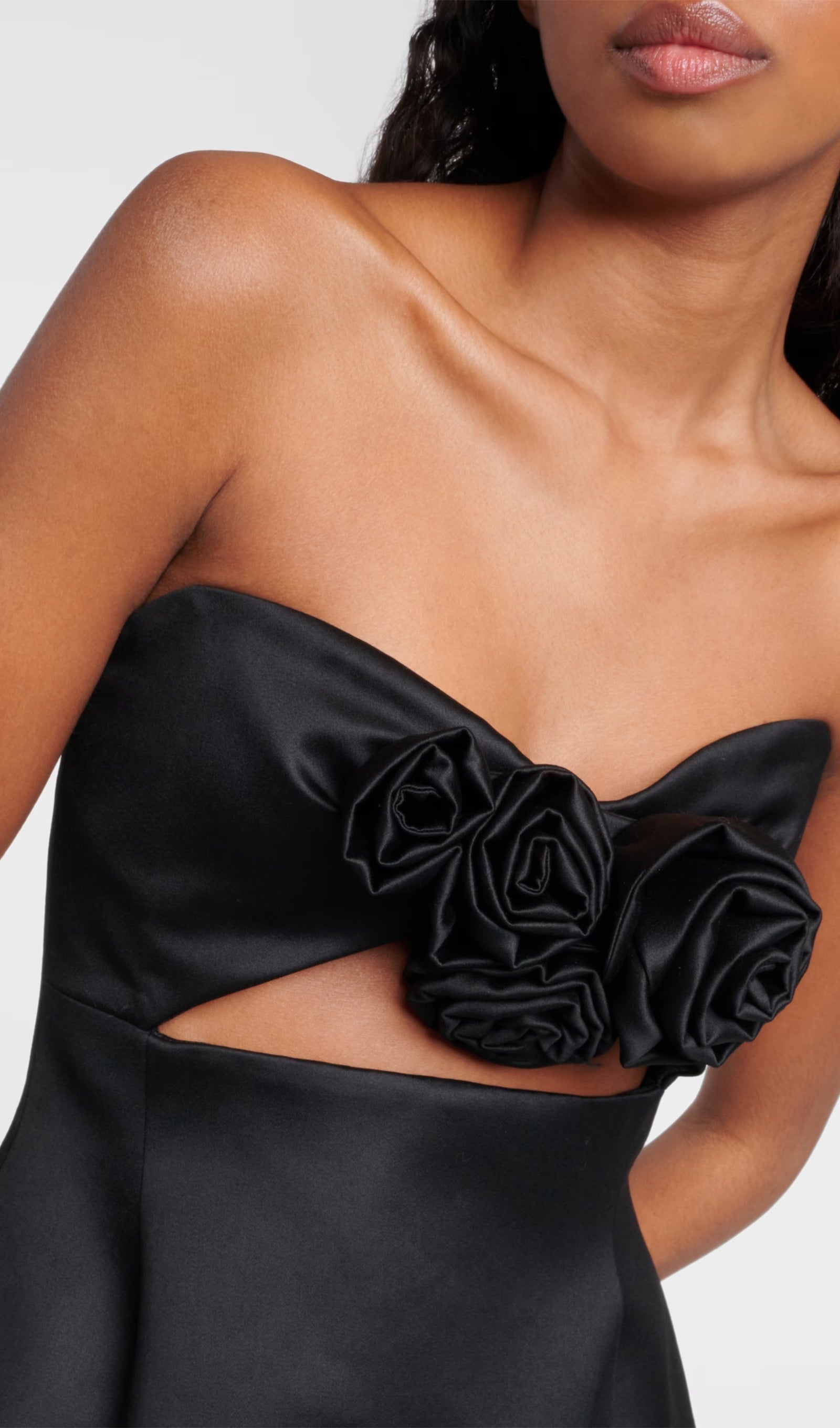 Çiçekli Büstiyer Mini Elbise-Siyah