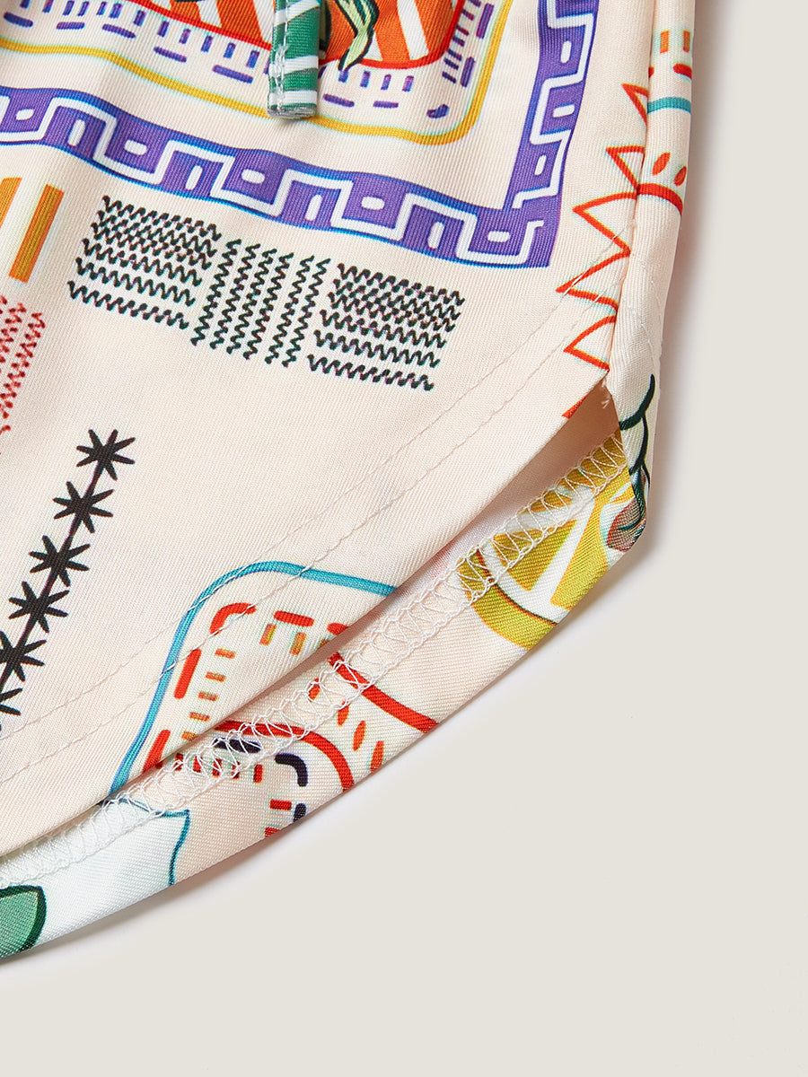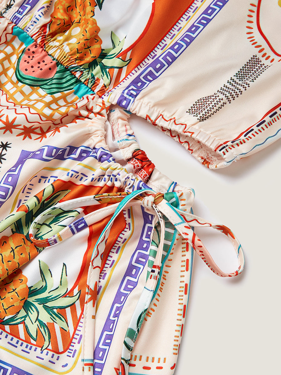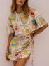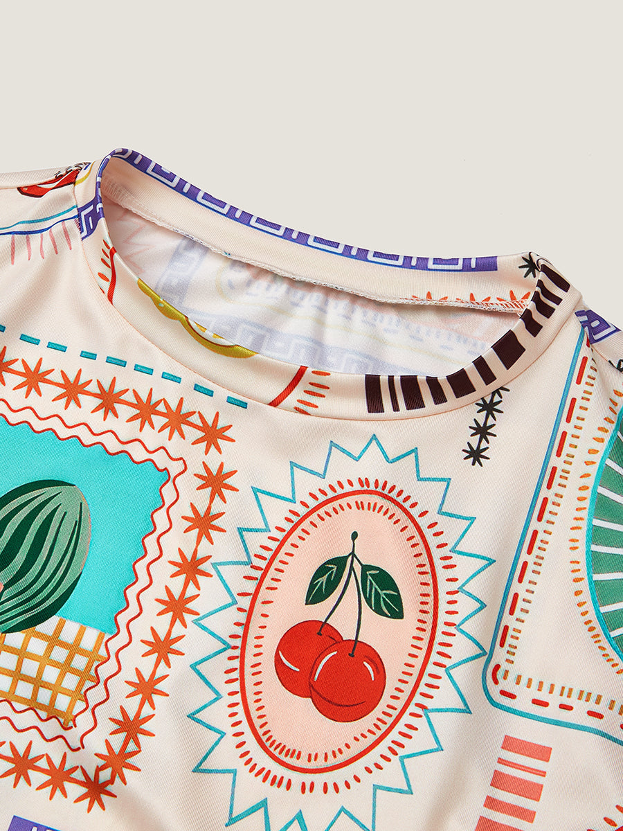 Meyve Baskılı Kısa Kollu Kesik Mini Elbise