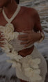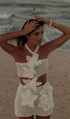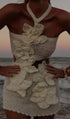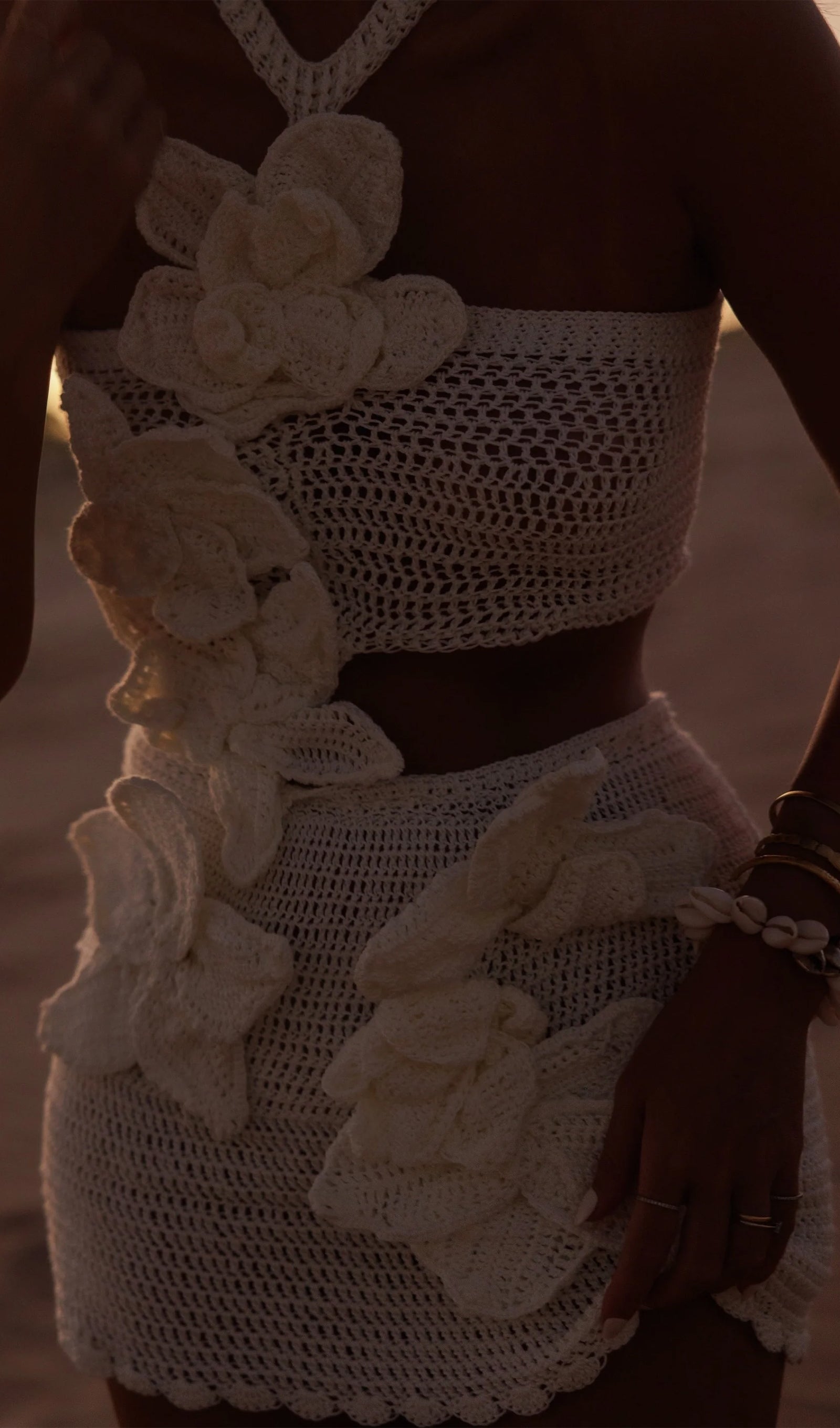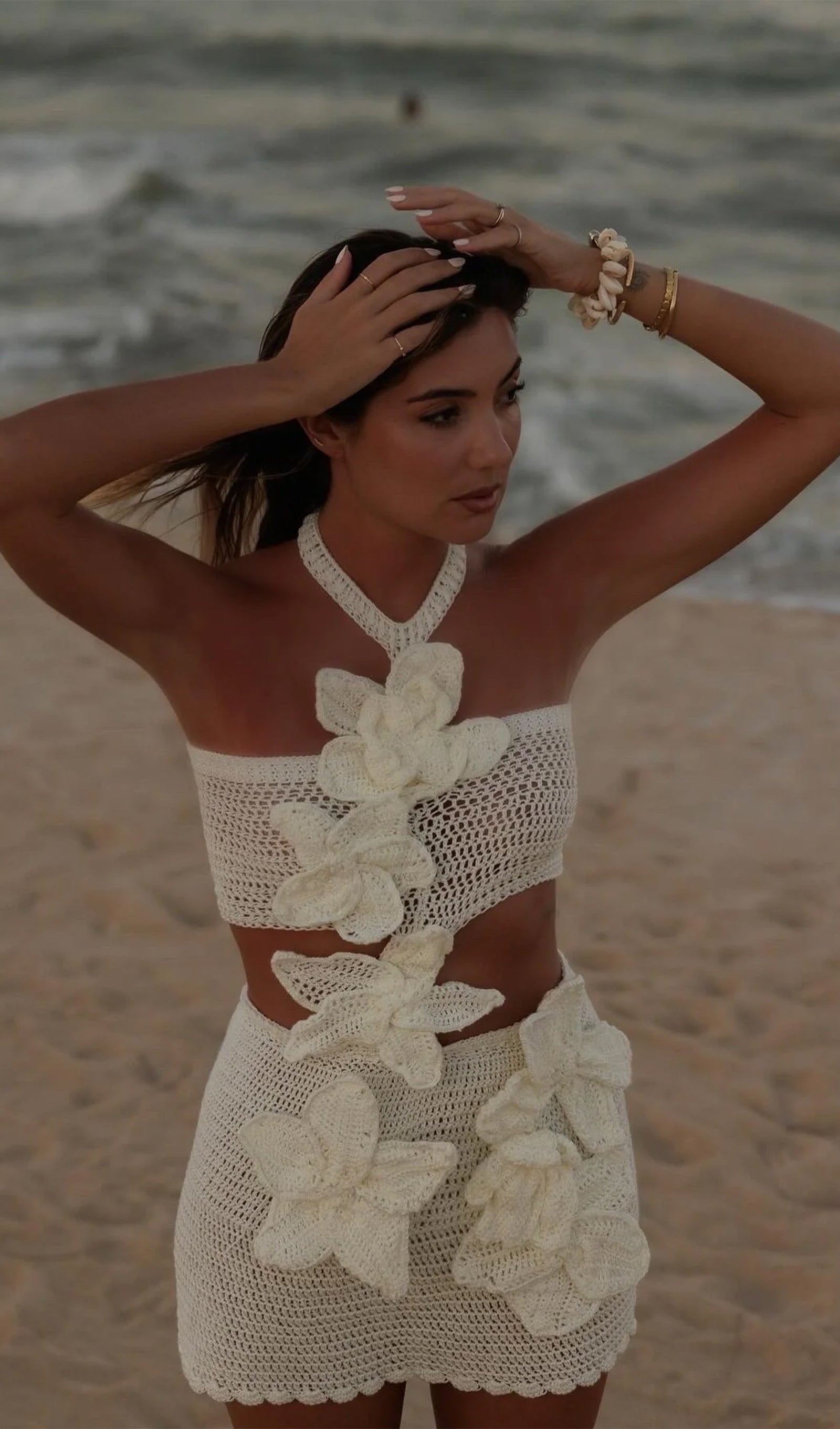 Beyaz/Siyah Örgü Çiçekli Mini Elbise
