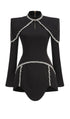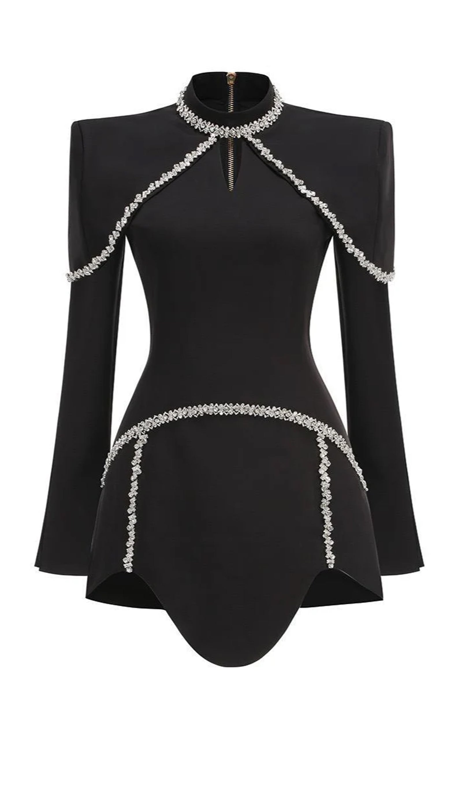 Uzun Kollu Yüksek Yaka Kristal Mini Elbise