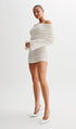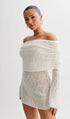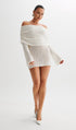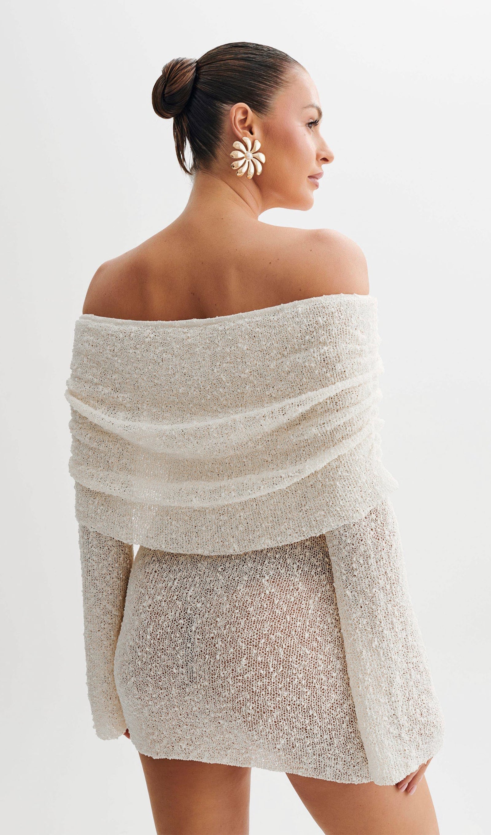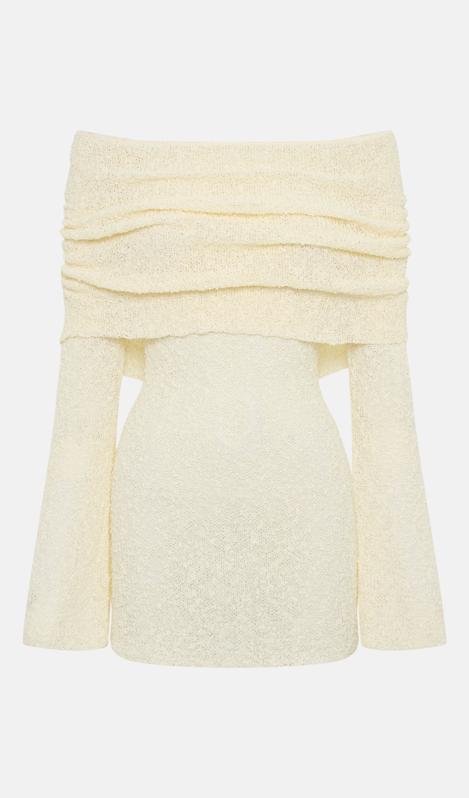 Omuz Açık Fildişi Bukle Örgü Mini Elbise