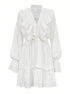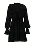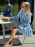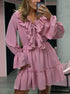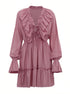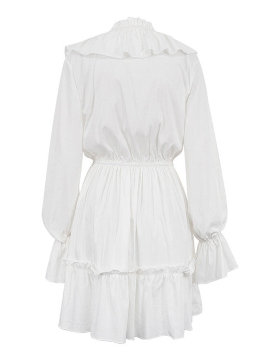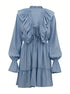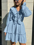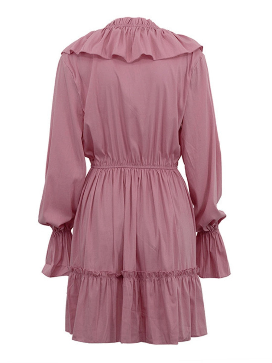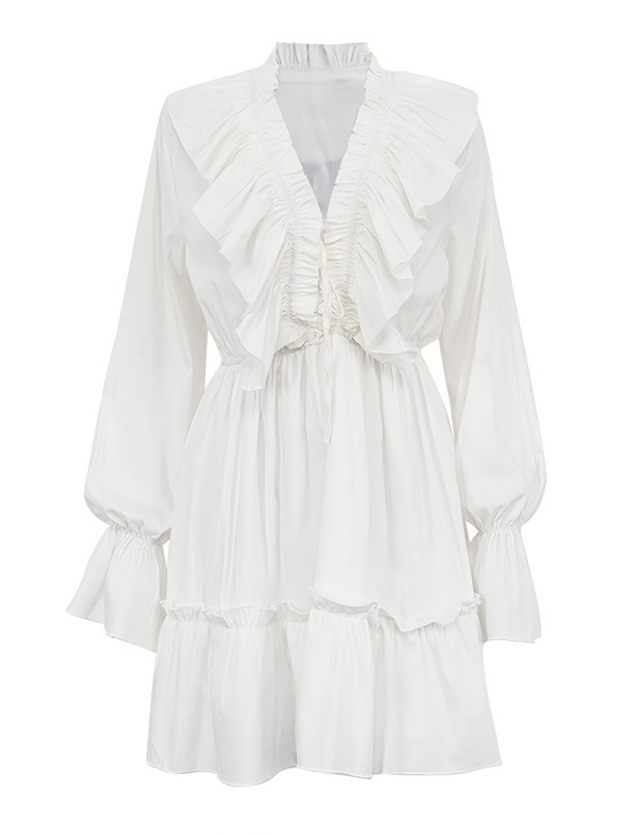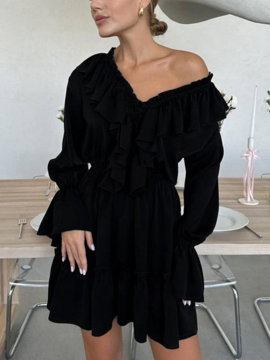 Volanlı V Yakalı Kloş Kollu Mini Elbise