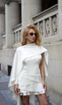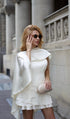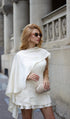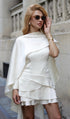 Beyaz Saten Pelerin İki Parça Mini Elbise