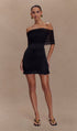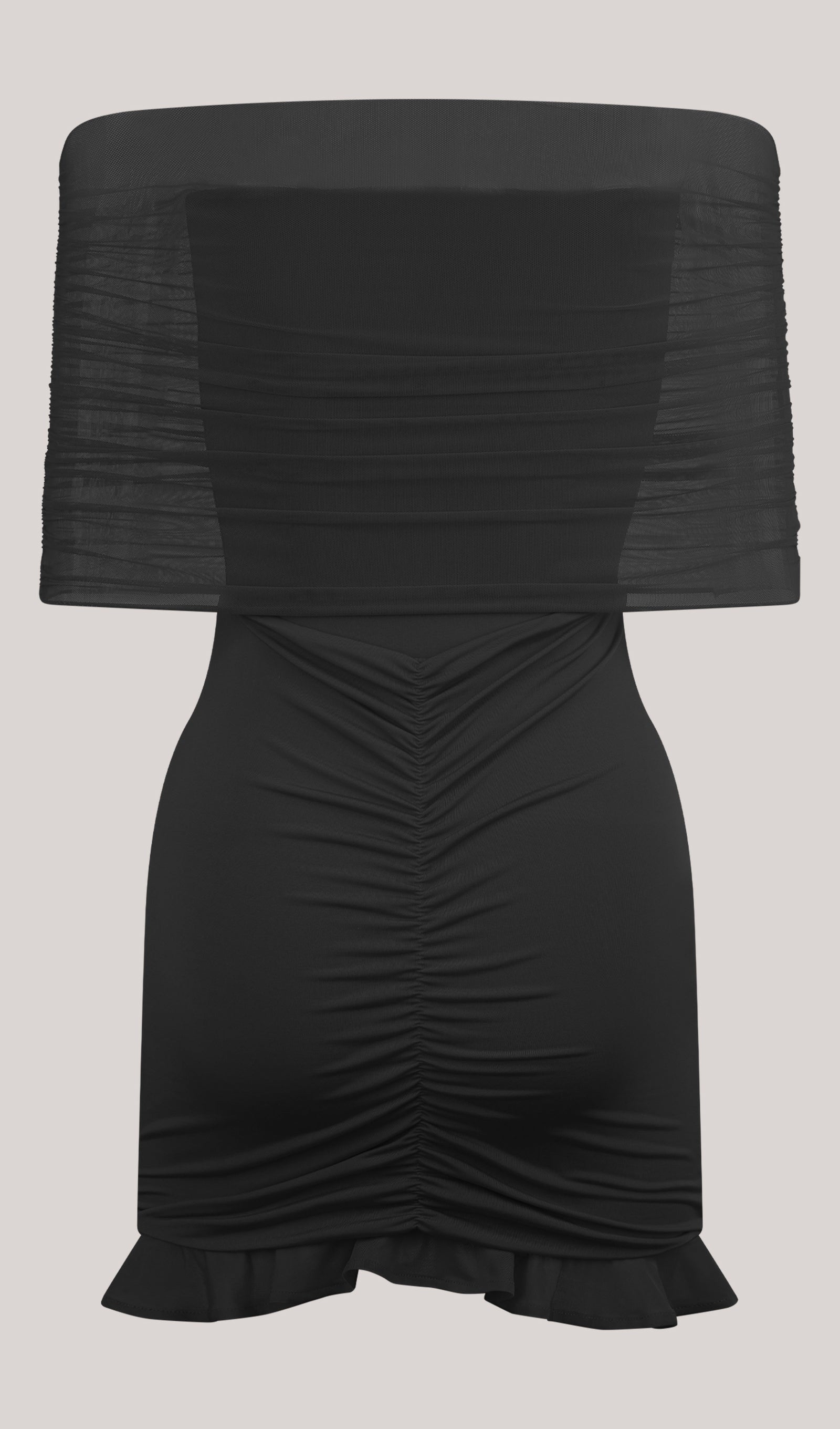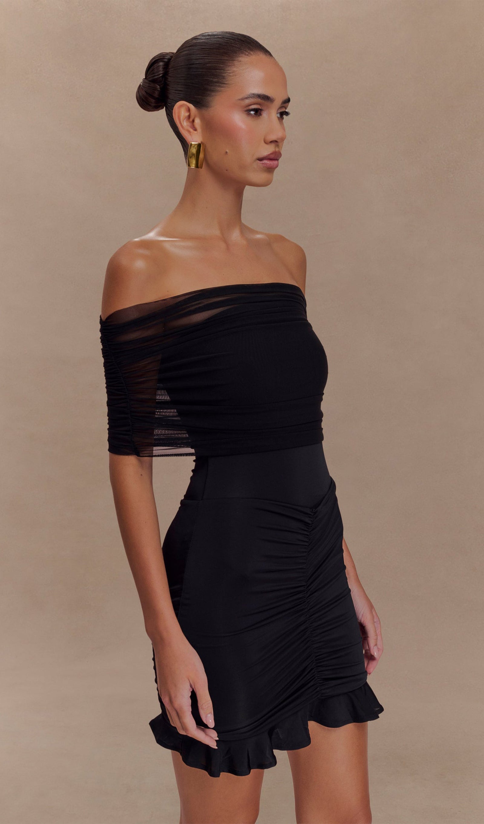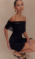 Siyah Slinky Ve File Omuz Açık Mini Elbise