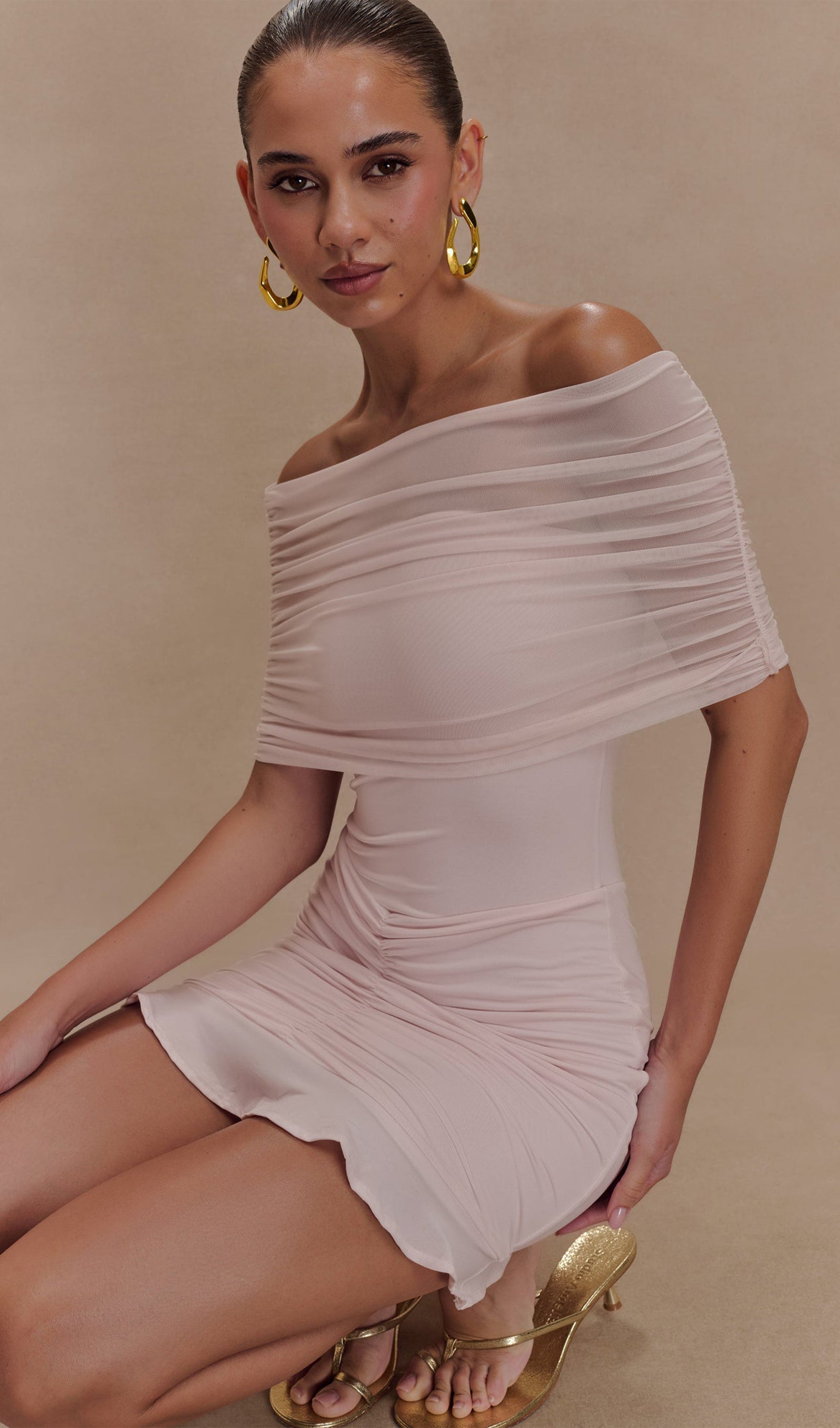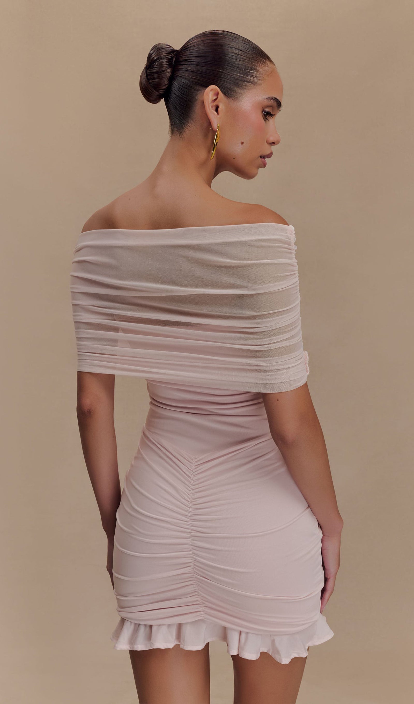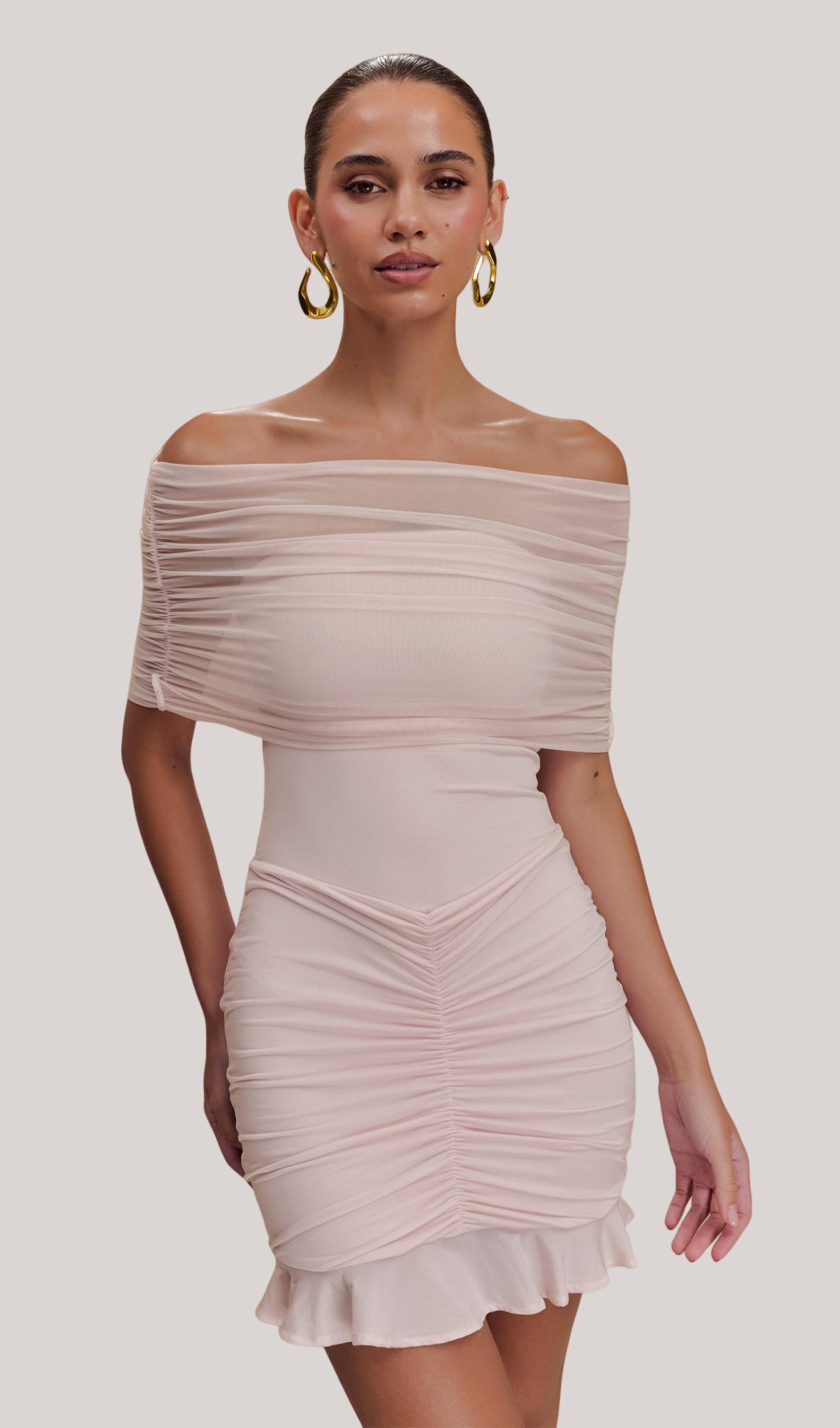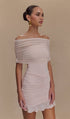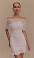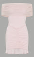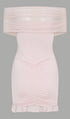 Açık Pembe Slinky Ve Fileli Omuz Açık Mini Elbise