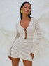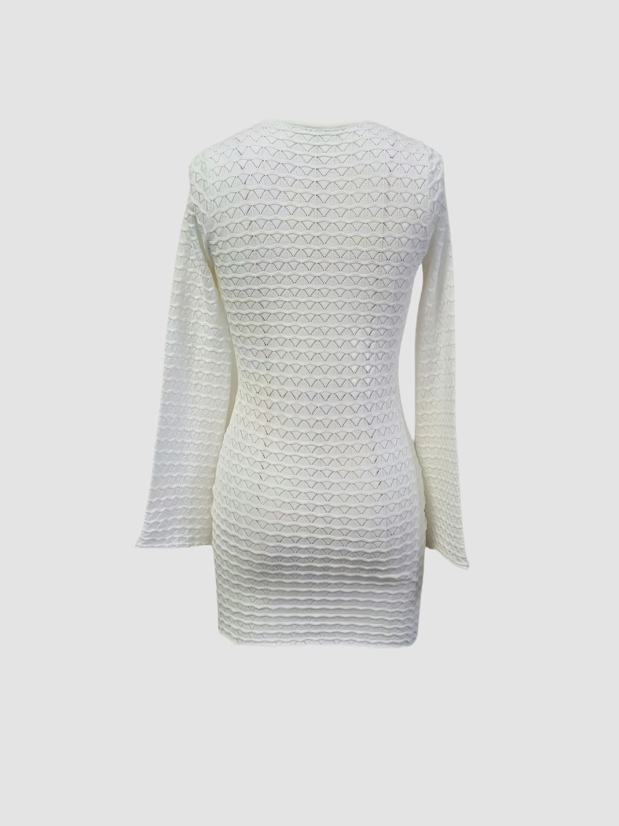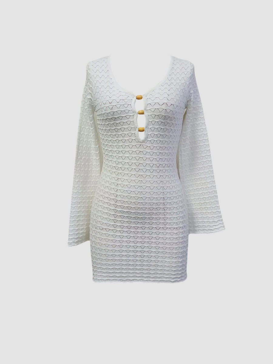 Düz Tığ İşi Anahtar Deliği Kesimli Mini Elbise